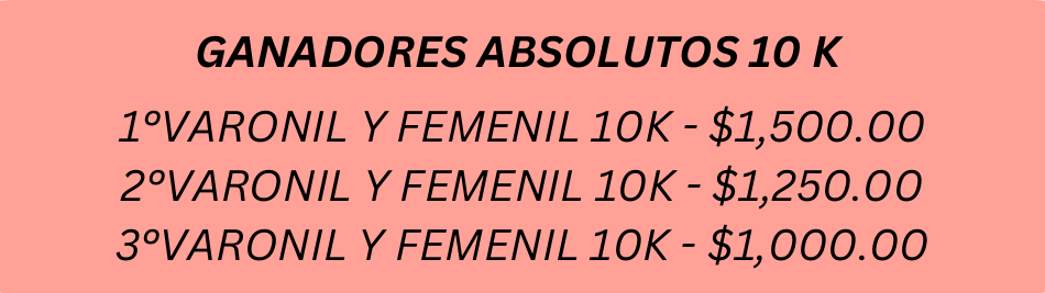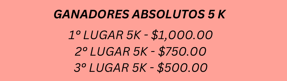 *Se proporcionará el tiempo oficial y tiempo por medio del chip al cruzar la meta.